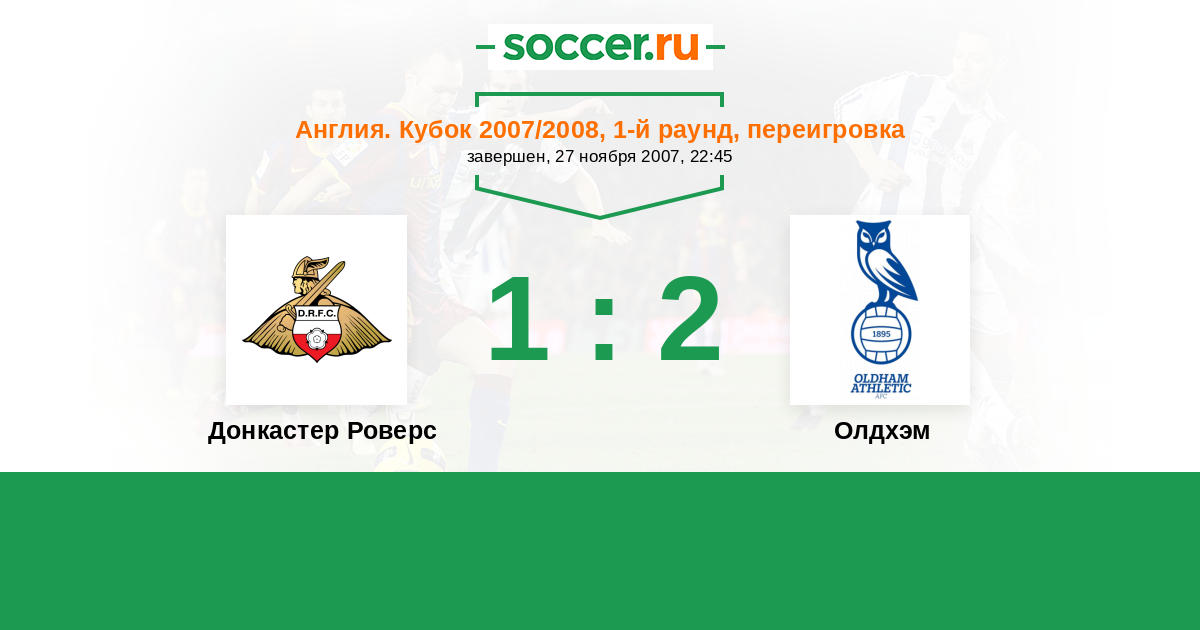 Англия. Кубок 27.11.2007 Донкастер Роверс Логотип футбольный клуб Донкастер Роверс 1:2 Логотип футбольный клуб Олдхэм Олдхэм