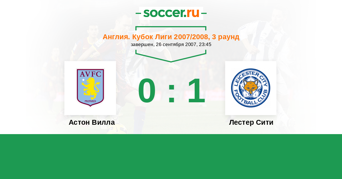 Англия. Кубок Лиги 23.10.2006 Лестер Сити Логотип футбольный клуб Лестер Сити 2:2 Логотип футбольный клуб Астон Вилла (Бирмингем) Астон Вилла