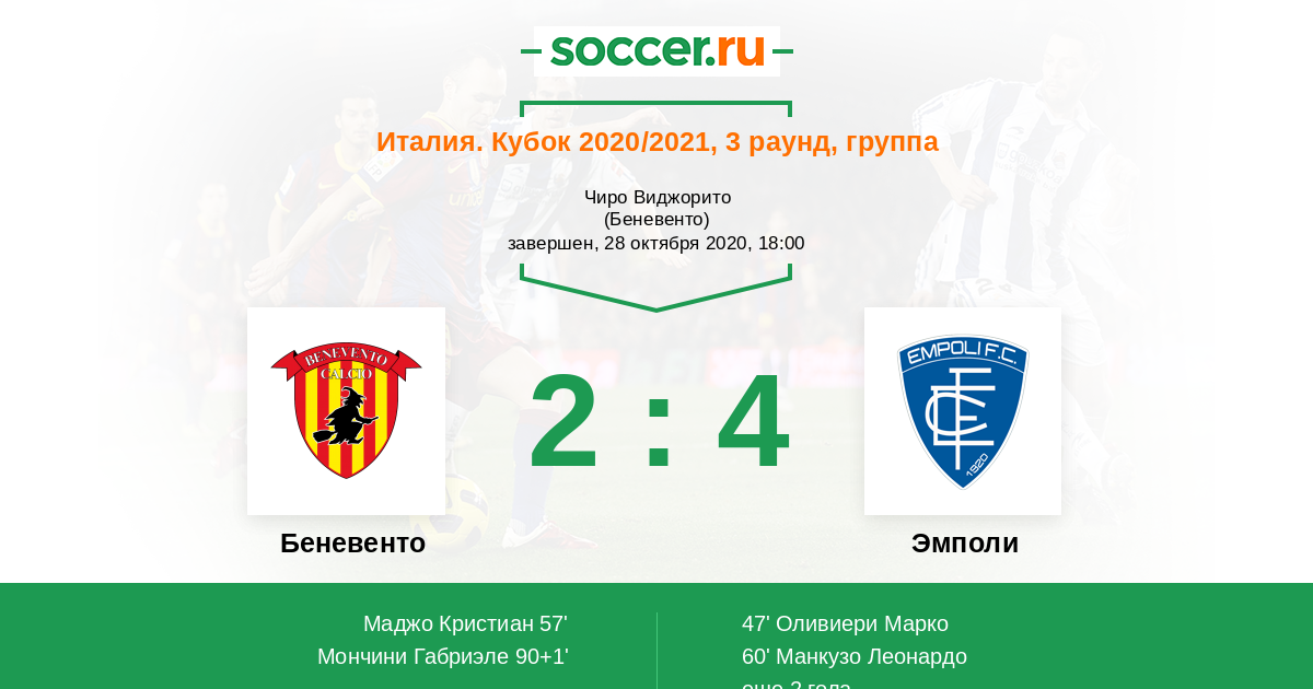 Протокол матча Беневенто против Эмполи