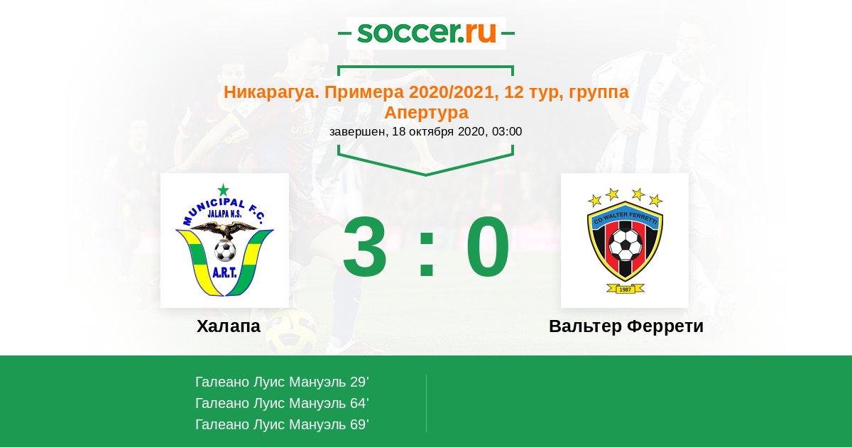 Протокол матча Халапа против Вальтер Феррети