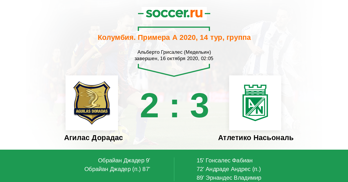 Протокол матча Агилас Дорадас против Атлетико Насьональ