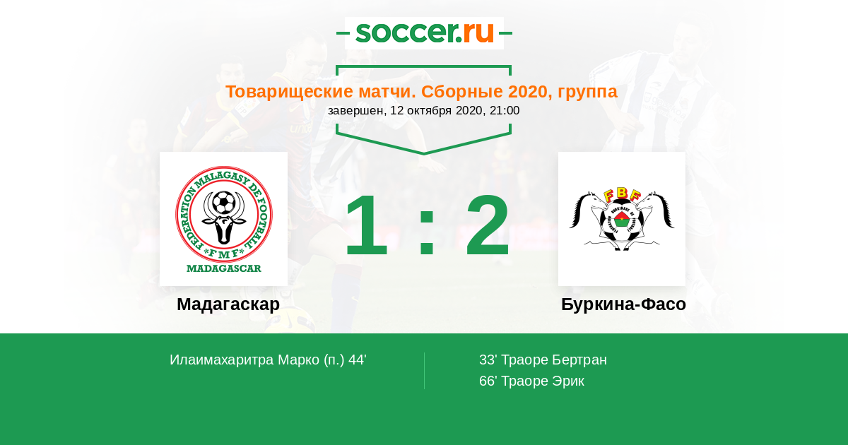 Протокол матча Мадагаскар против Буркина-Фасо