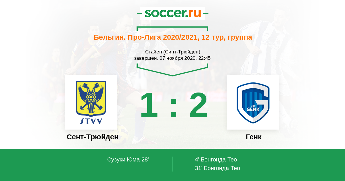 Протокол матча Сент-Трюйден против Генк