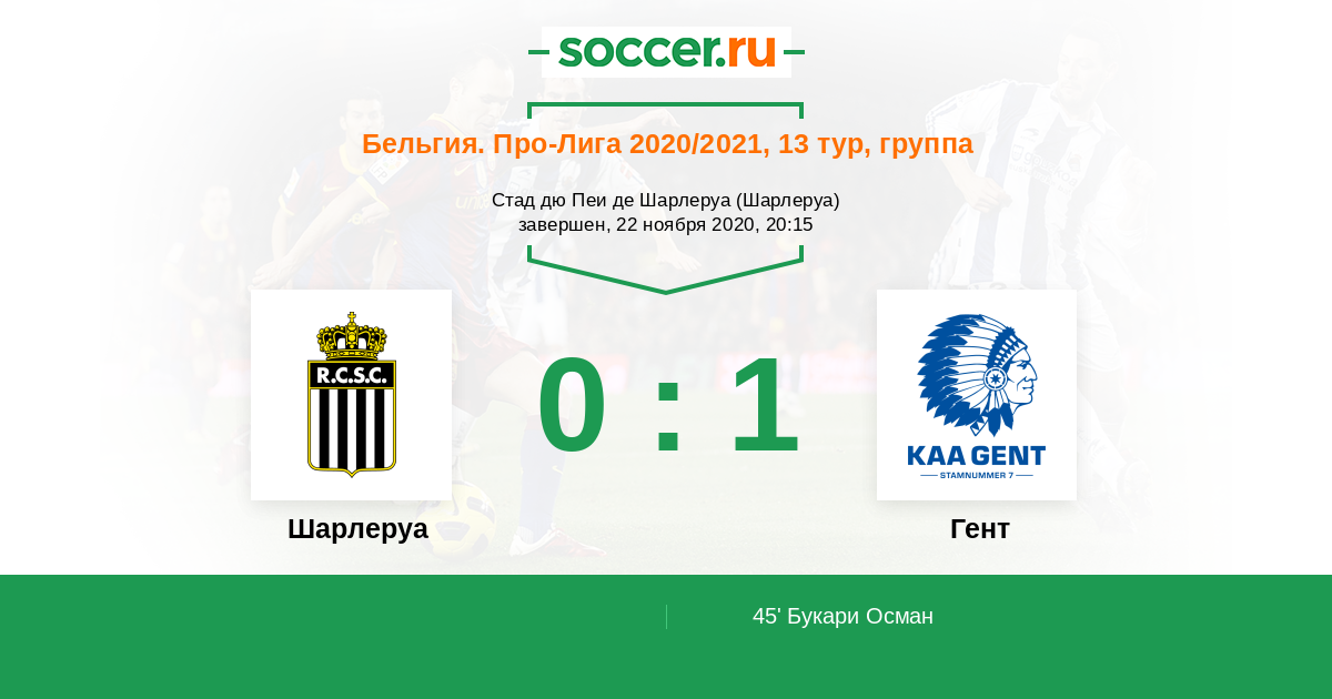 Протокол матча Шарлеруа против Гент