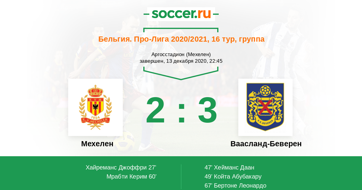 Протокол матча Мехелен против Ваасланд-Беверен