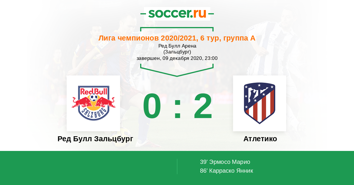 Протокол матча Ред Булл Зальцбург против Атлетико