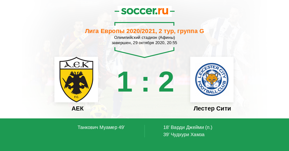Протокол матча АЕК против Лестер Сити