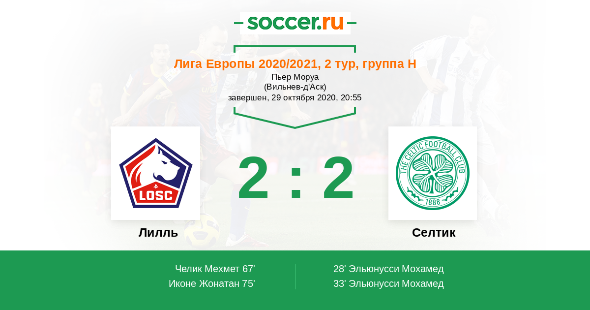 Протокол матча Лилль против Селтик