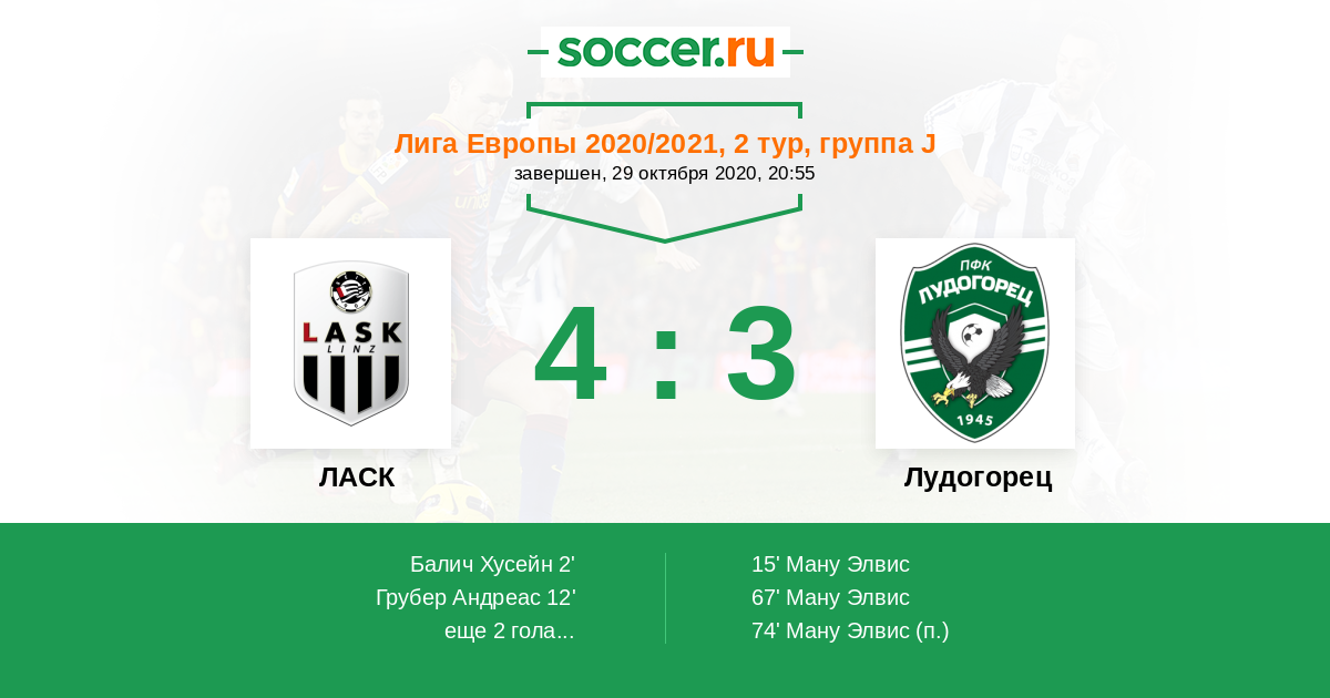 Протокол матча ЛАСК против Лудогорец