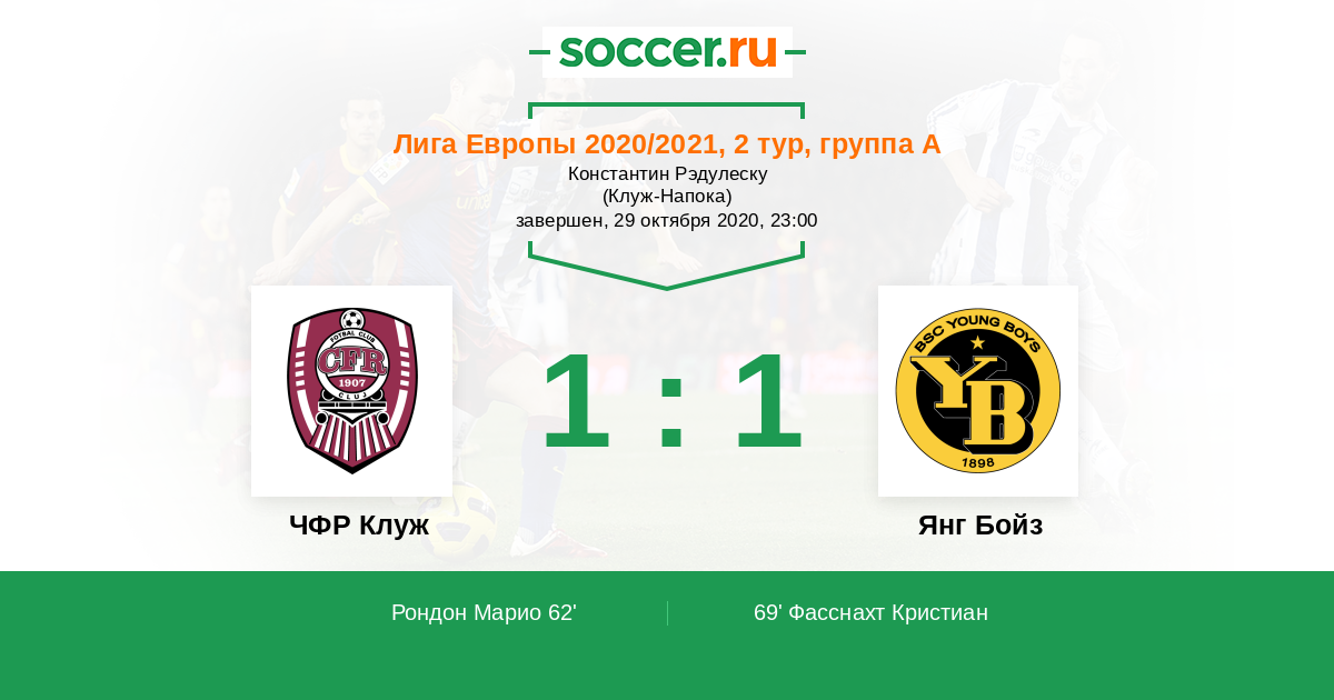 Протокол матча ЧФР Клуж против Янг Бойз