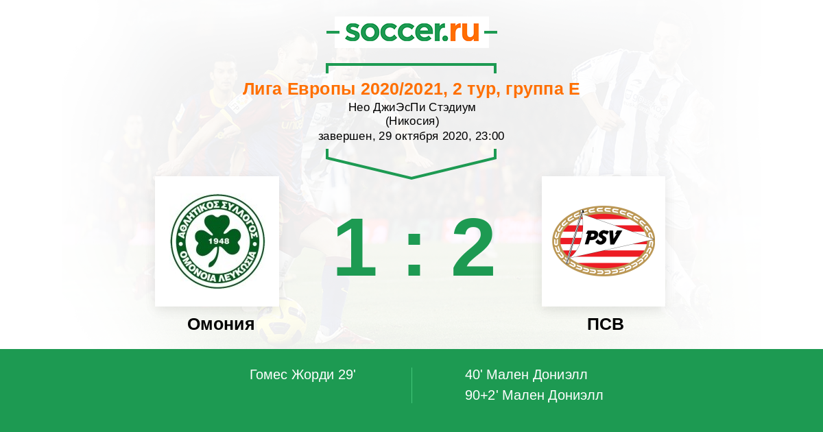 Протокол матча Омония против ПСВ