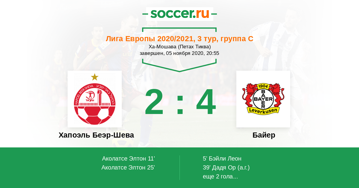 Протокол матча Хапоэль Беэр-Шева против Байер