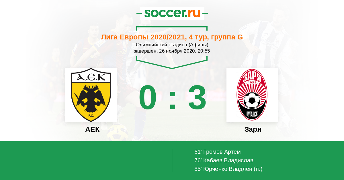 Протокол матча АЕК против Заря