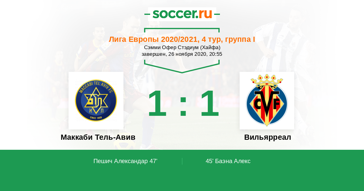 Протокол матча Маккаби Тель-Авив против Вильярреал