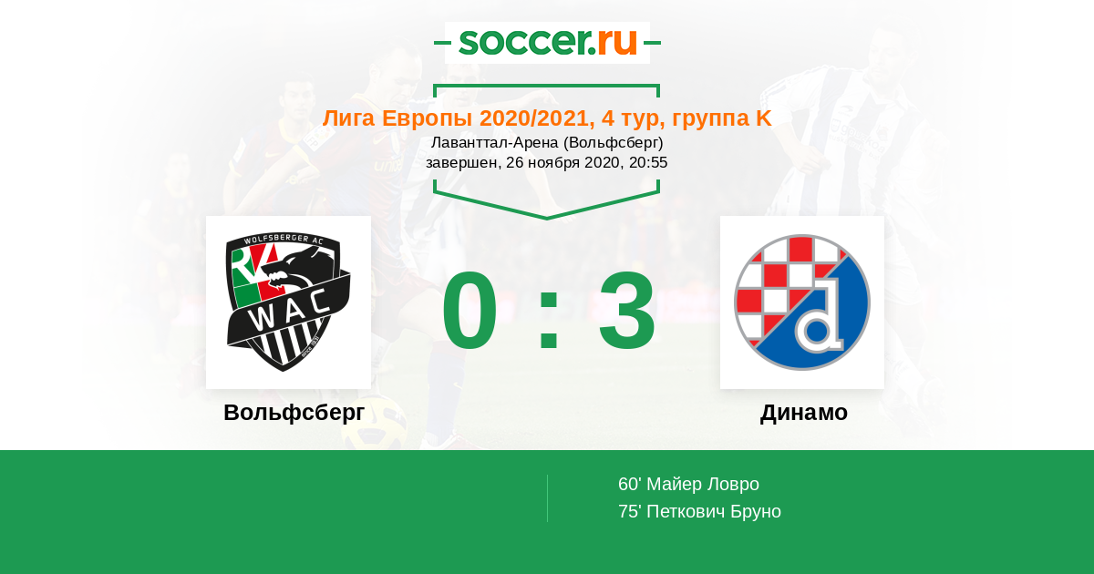 Протокол матча Вольфсберг против Динамо