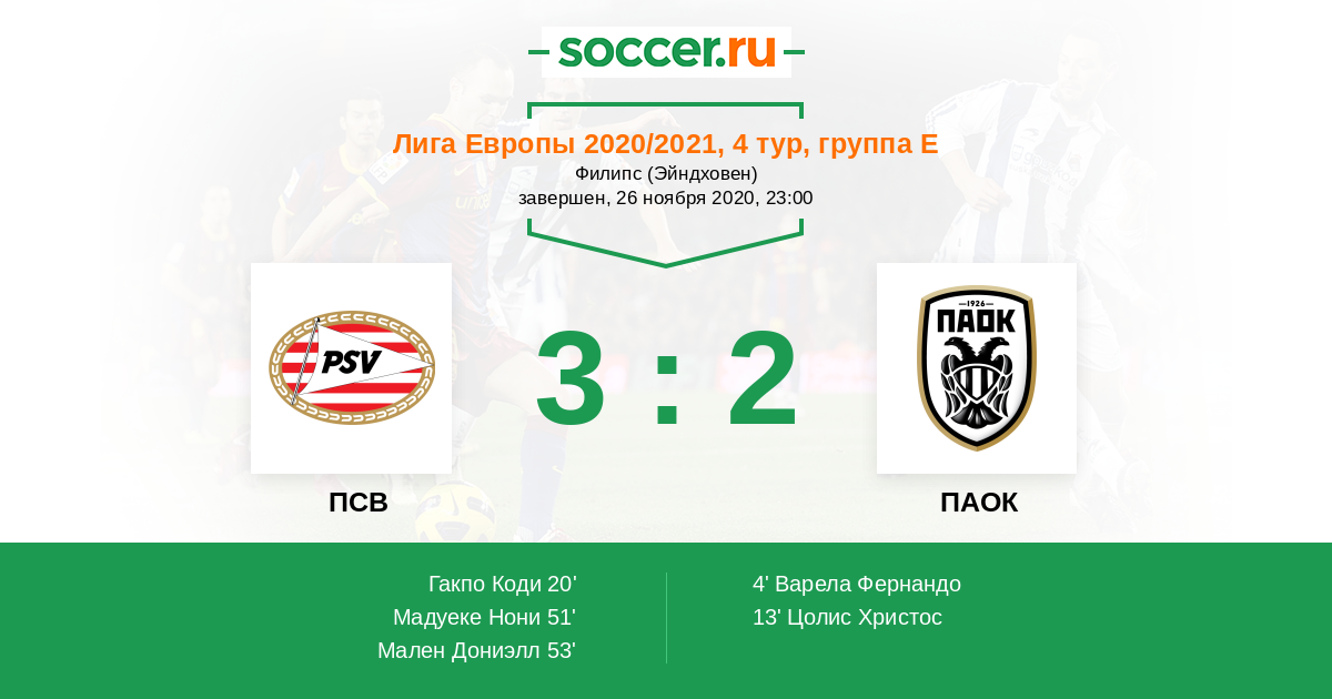 51' (2:2) Мадуэке Нони (23) (Гакпо Коди (19))