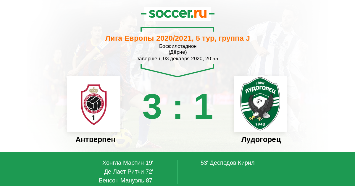 19' (1:0) Хонгла Мартин (18) (Бенавенте Кристиан (24))