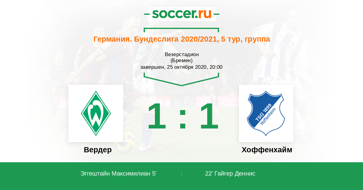 Протокол матча Вердер против Хоффенхайм