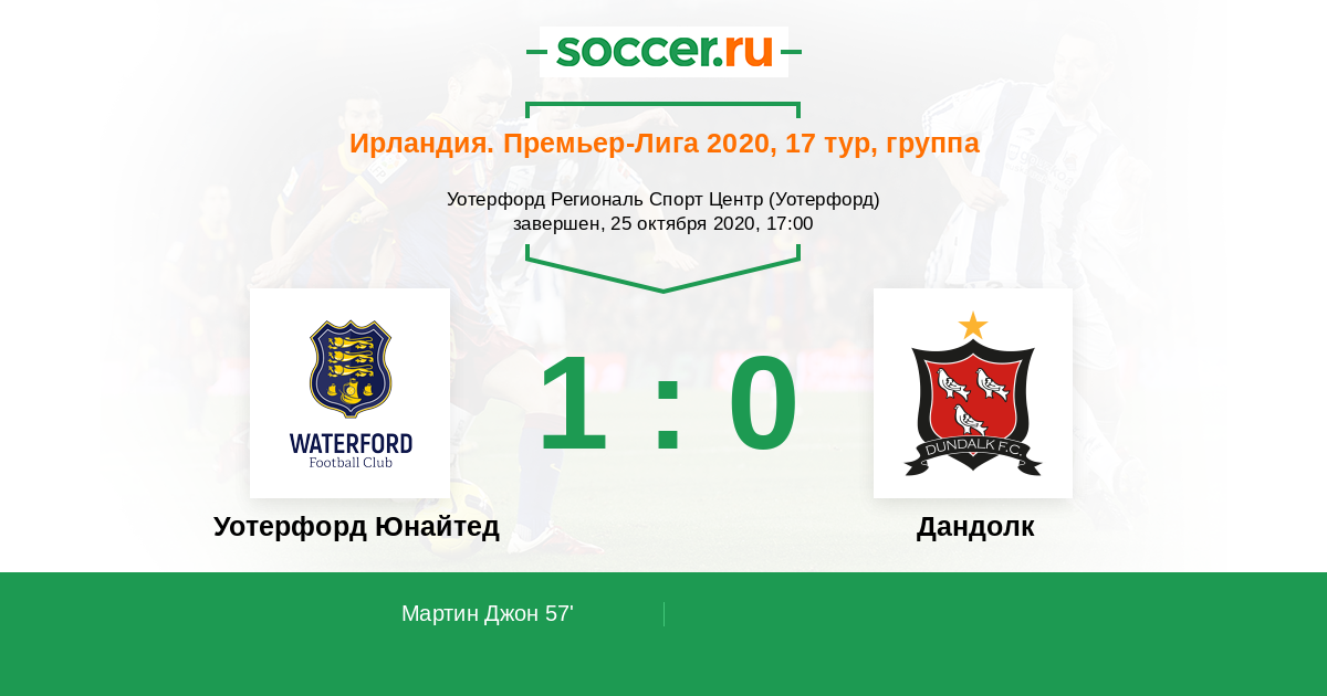 Протокол матча Уотерфорд Юнайтед против Дандолк