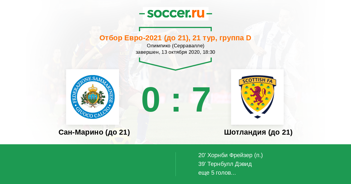 Протокол матча Сан-Марино (до 21) против Шотландия (до 21)