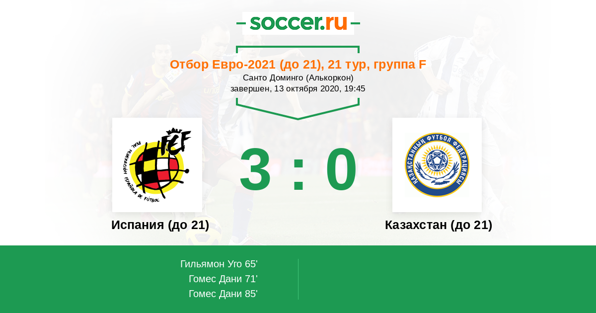 Протокол матча Испания (до 21) против Казахстан (до 21)