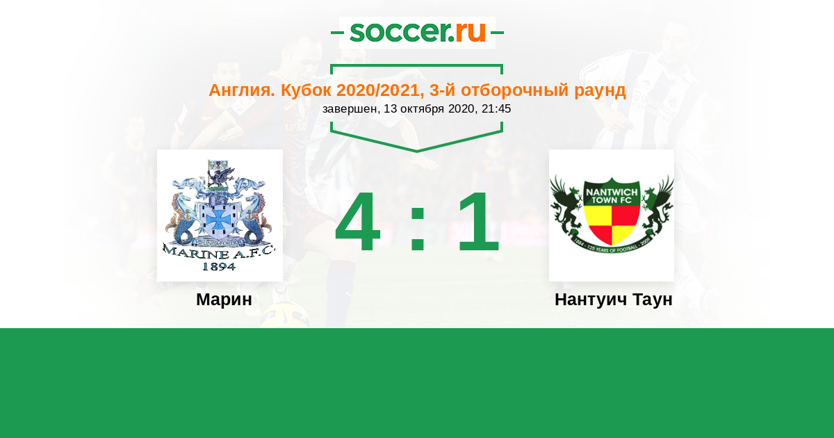 Англия. Истмийский дивизион 07.10.2014 Нантуич Таун Логотип футбольный клуб Нантуич Таун 2:1 Логотип футбольный клуб Марин (Кросби) Марин