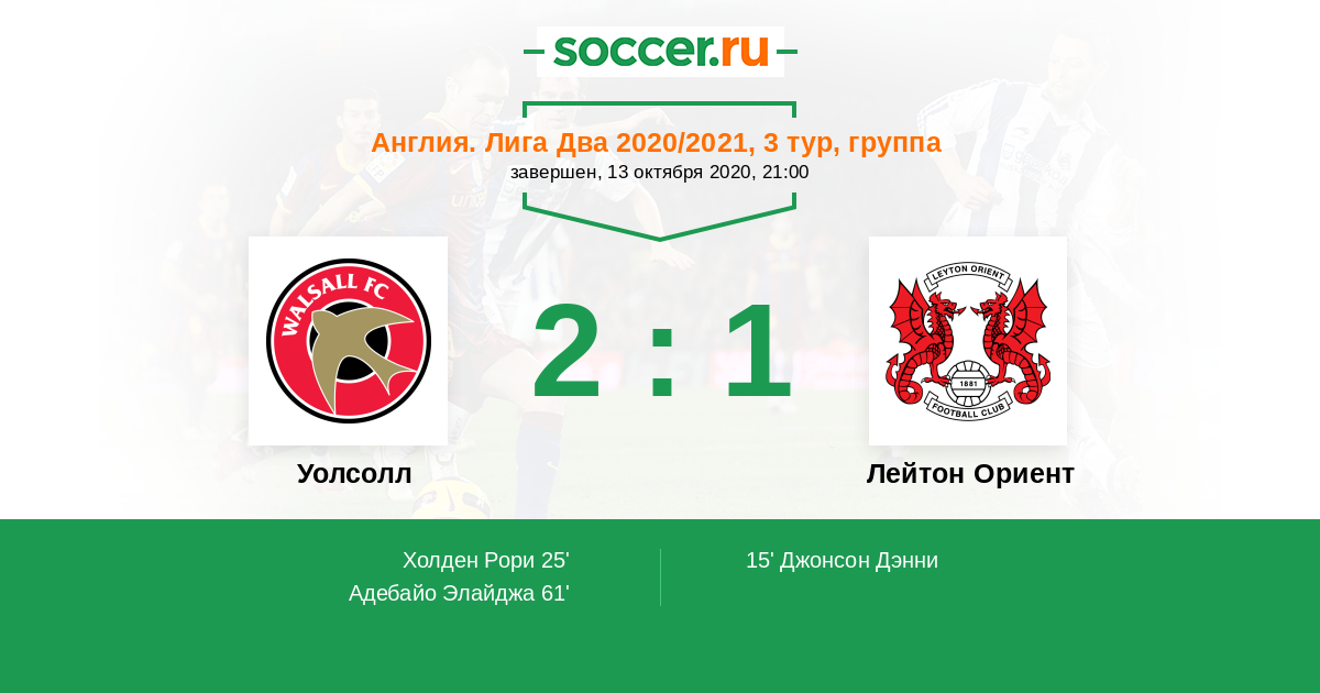 Протокол матча Уолсолл против Лейтон Ориент
