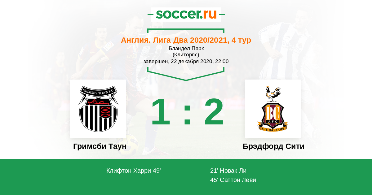 Протокол матча Гримсби Таун против Брэдфорд Сити