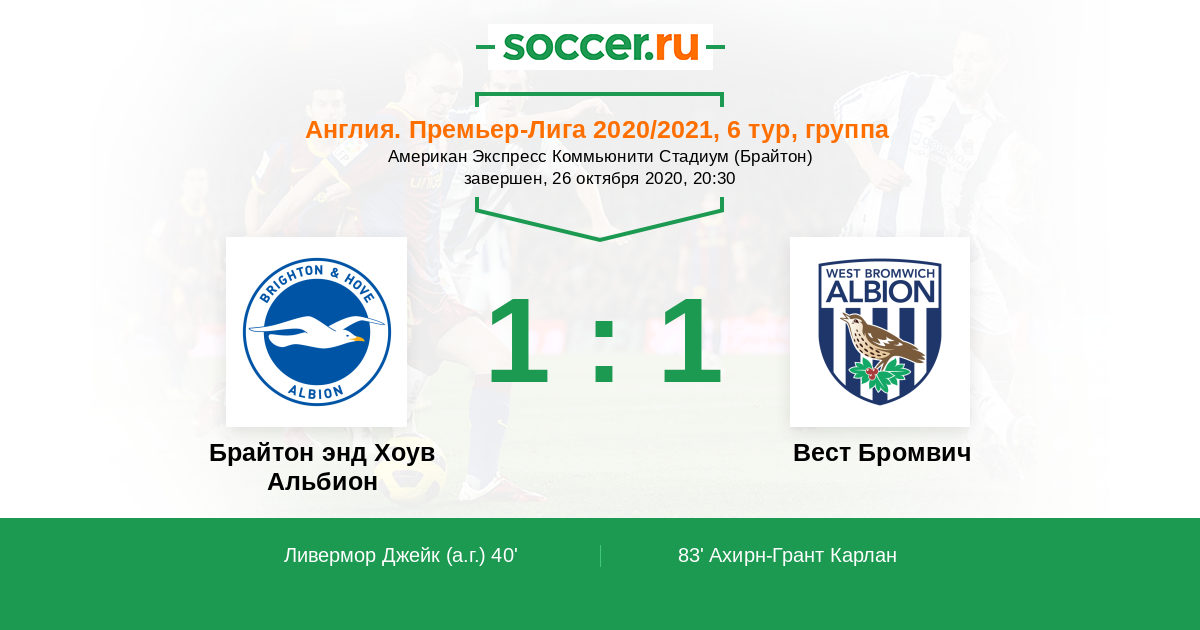 Протокол матча Брайтон энд Хоув Альбион против Вест Бромвич