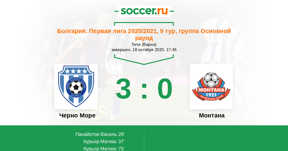 Протокол матча Черно Море против Монтана