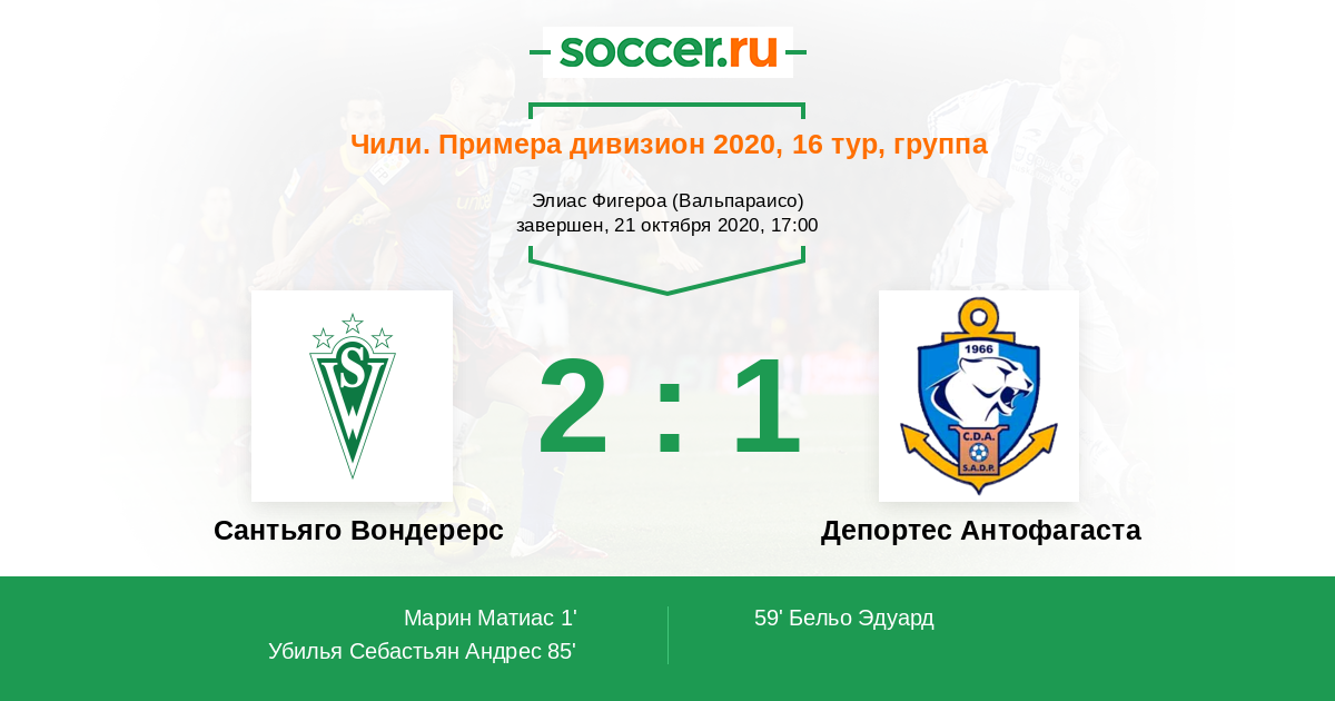 Протокол матча Сантьяго Вондерерс против Депортес Антофагаста
