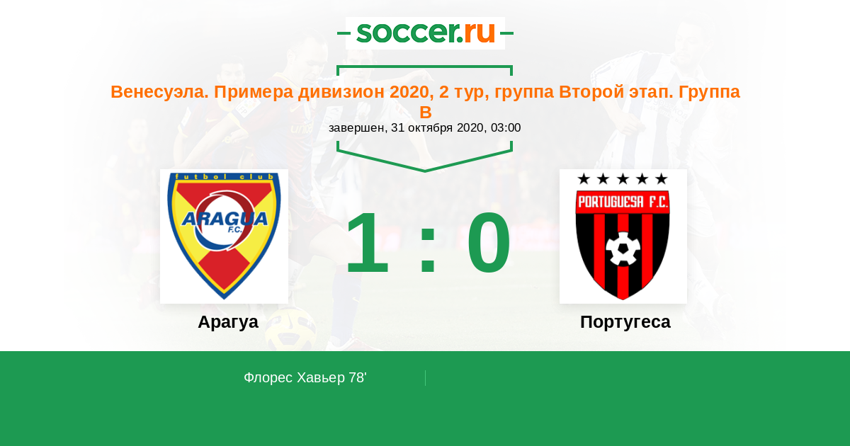 Протокол матча Арагуа против Португеса