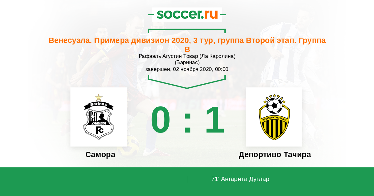 Протокол матча Замора против Депортиво Тачира