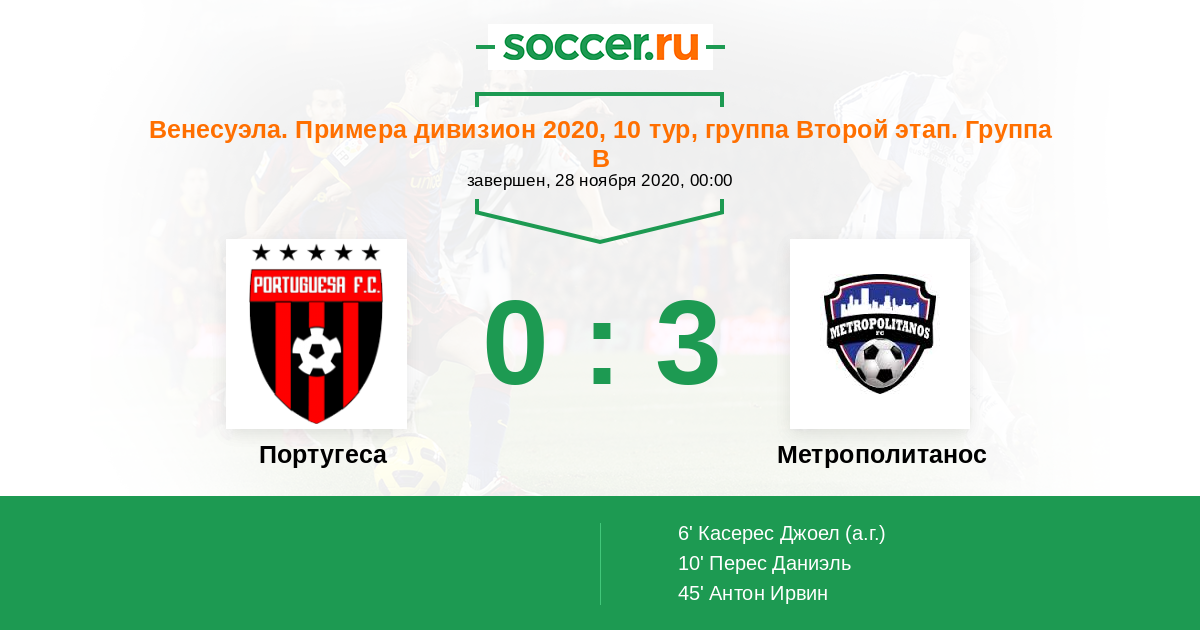 Протокол матча Португеса против Метрополитанос
