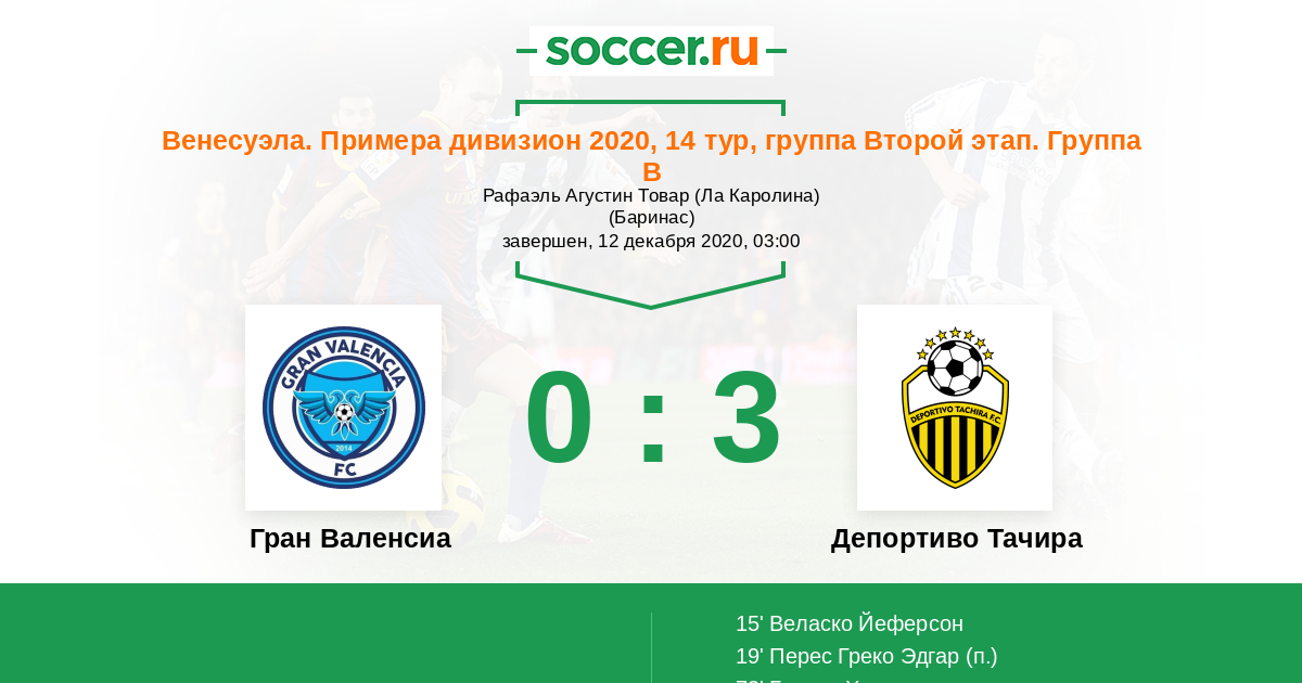 Протокол матча Гран Валенсиа против Депортиво Тачира