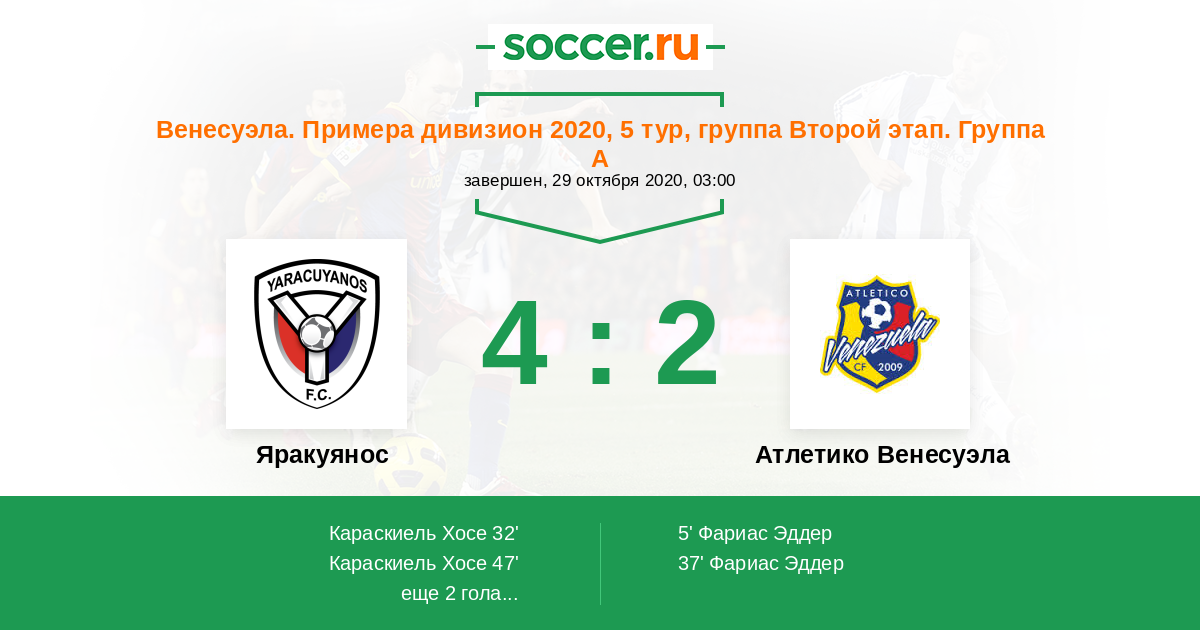 Протокол матча Яракуянос против Атлетико Венесуэла