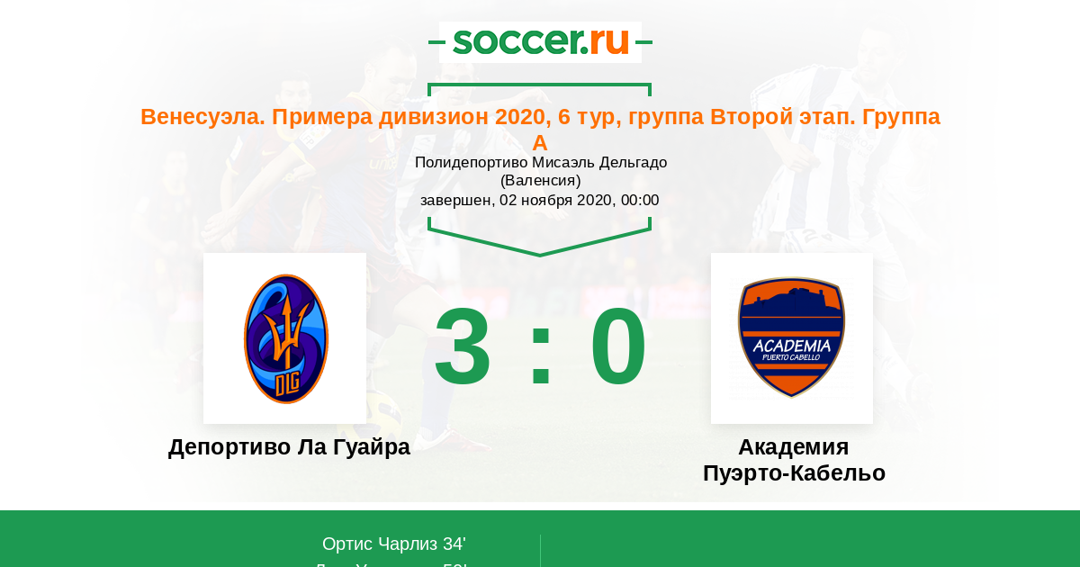 Протокол матча Депортиво Ла Гуайра против Пуэрто-Кабельо