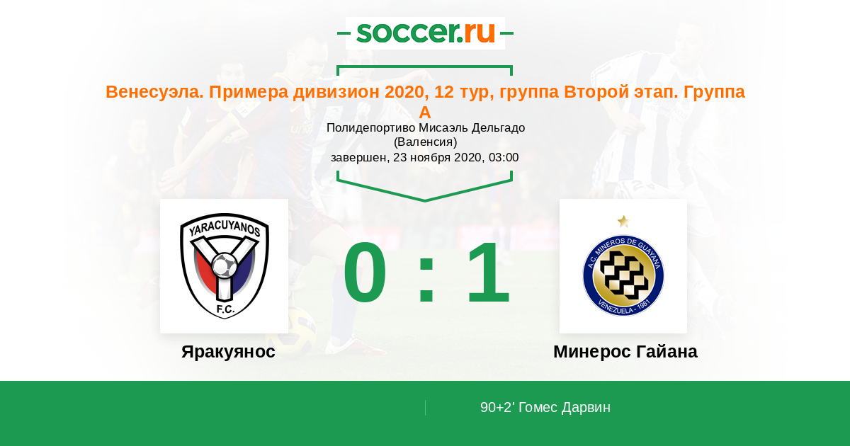 Протокол матча Яракуянос против Минерос Гайана