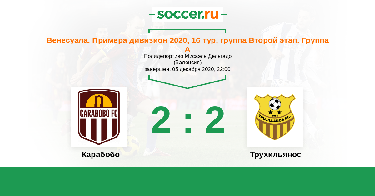 Венесуэла. Примера дивизион 05.11.2020 Трухильянос Логотип футбольный клуб Трухильянос (Валера) 3:0 Логотип футбольный клуб Карабобо (Валенсия) Карабобо