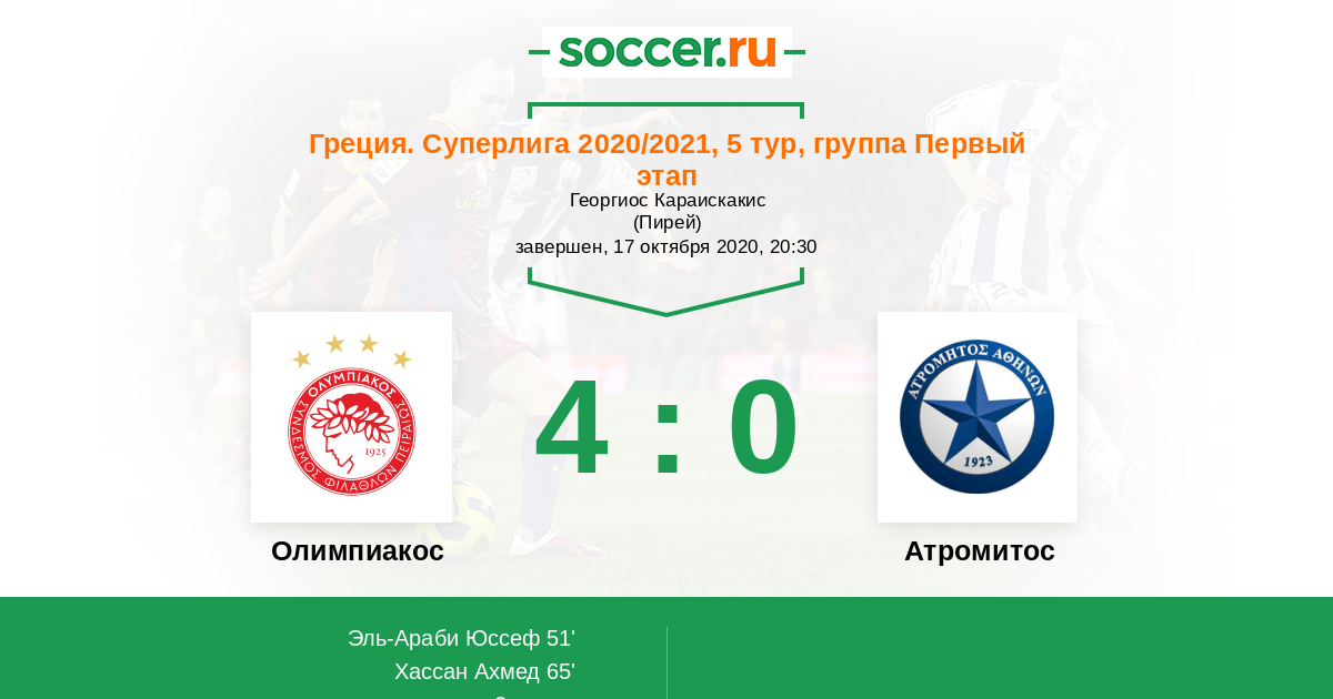 Протокол матча Олимпиакос против Атромитос