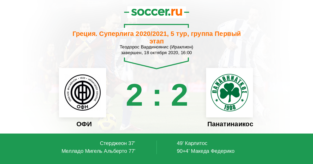Протокол матча ОФИ против Панатинаикос