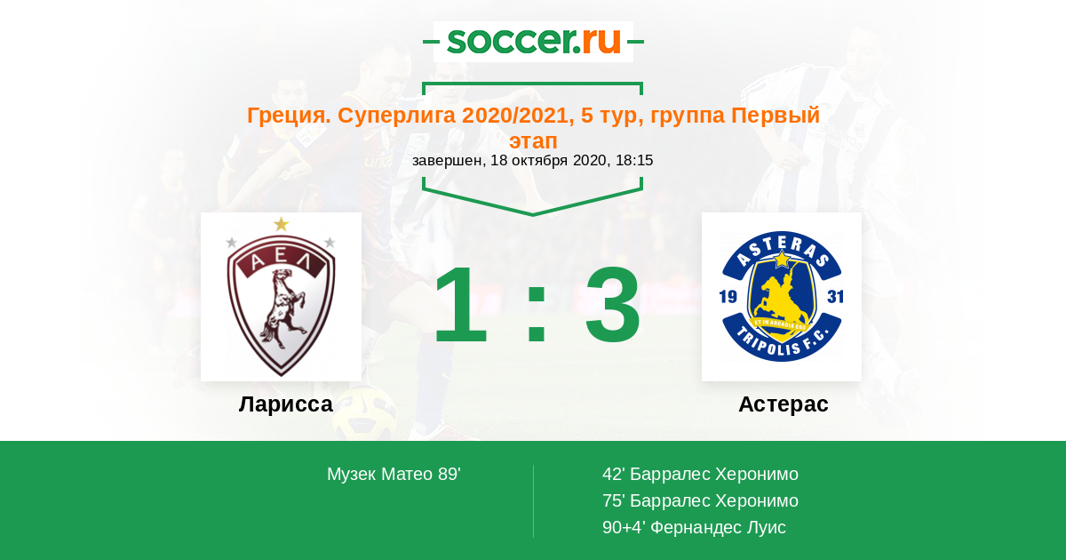 89' (1:2) Музек Матео (13) (Глинос Спиридон (14))