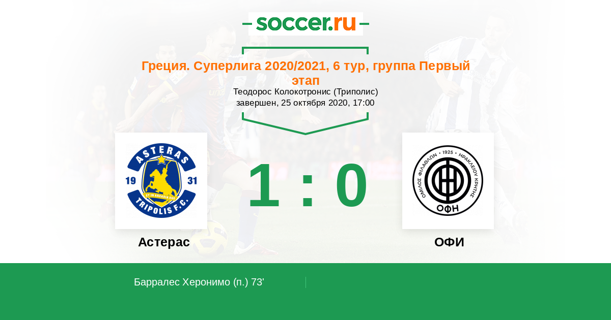 Протокол матча Астерас против ОФИ