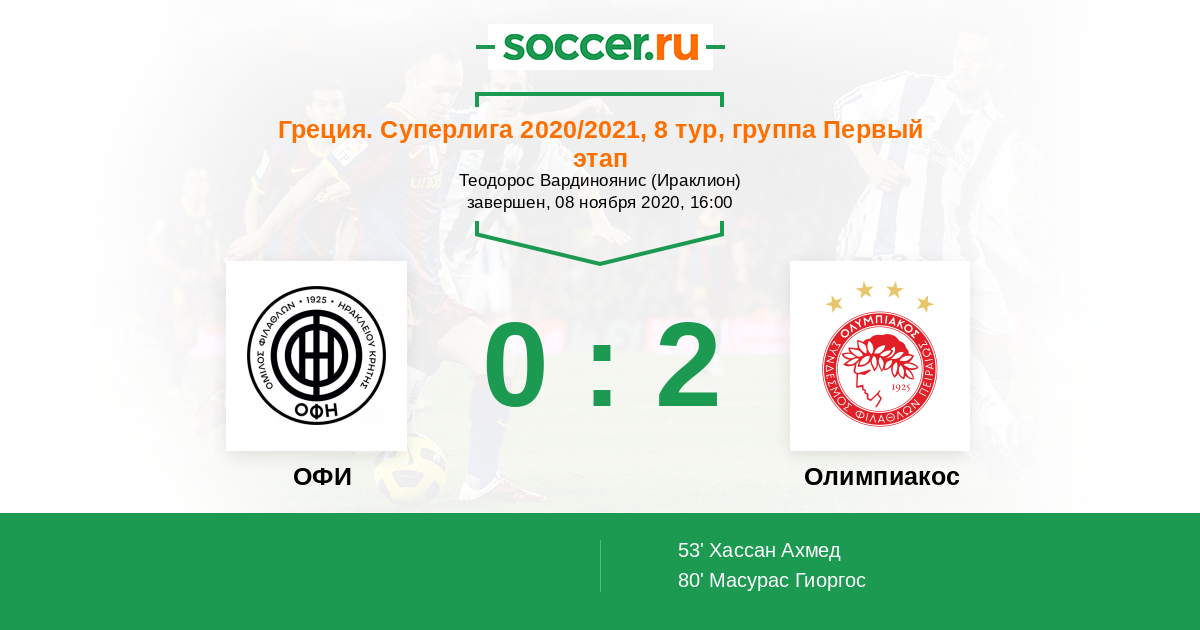 Протокол матча ОФИ против Олимпиакос