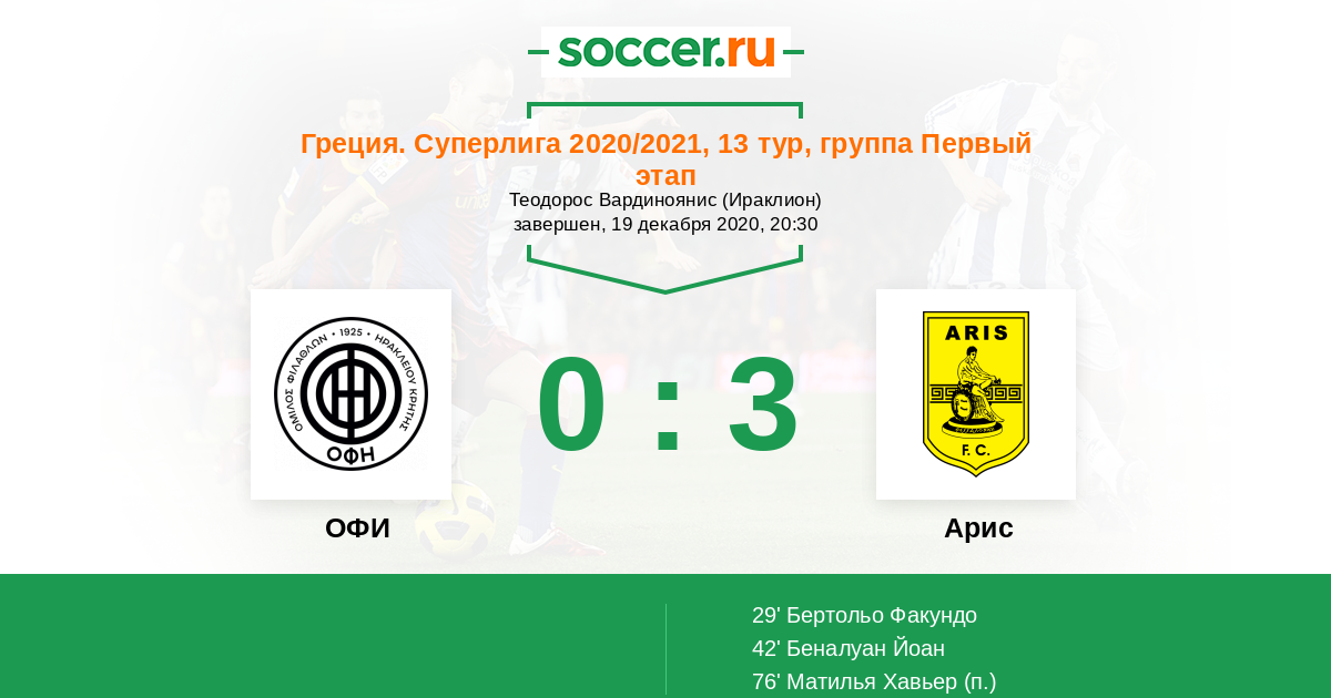 Протокол матча ОФИ против Арис