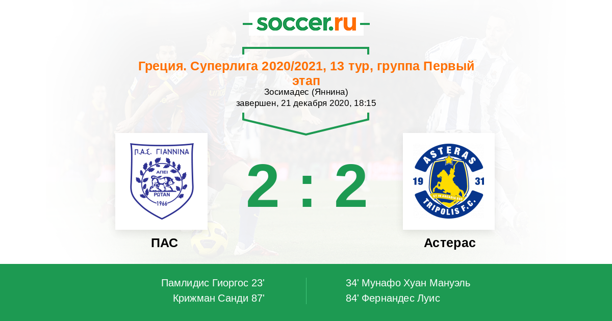 Протокол матча ПАС против Астерас