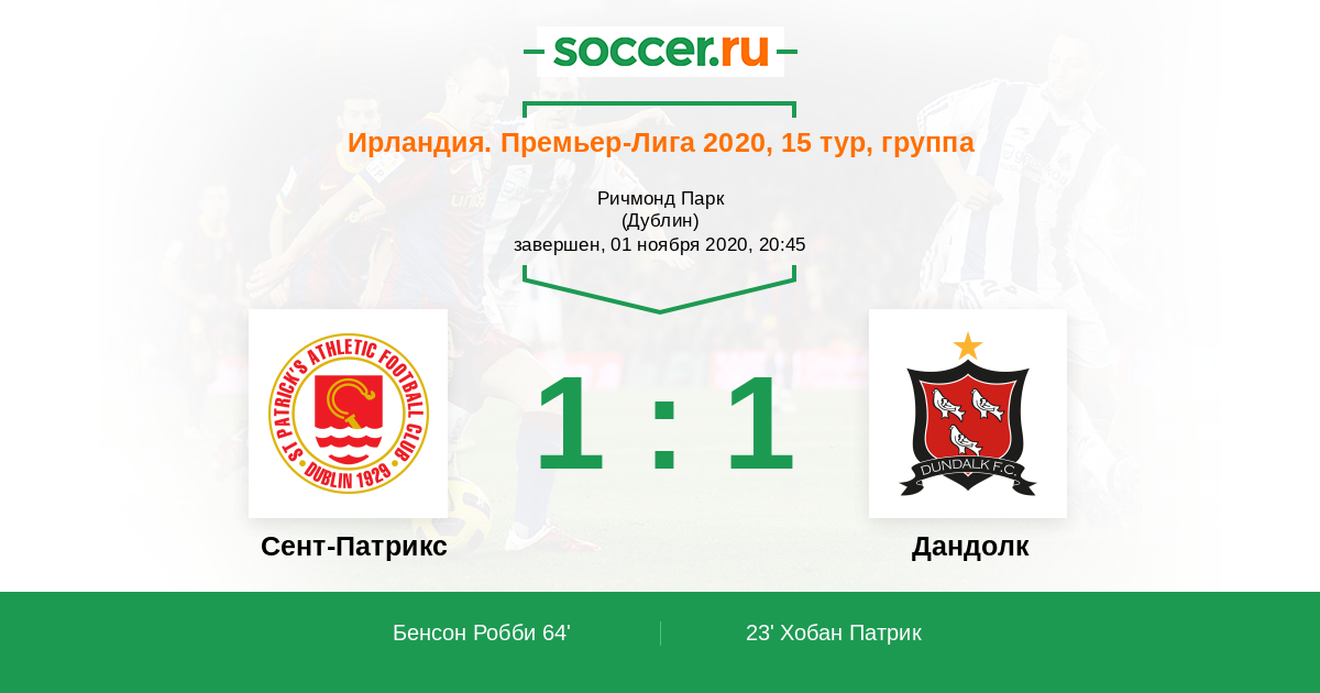 Протокол матча Сент-Патрикс против Дандолк
