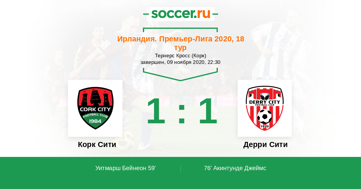 Протокол матча Корк Сити против Дерри Сити