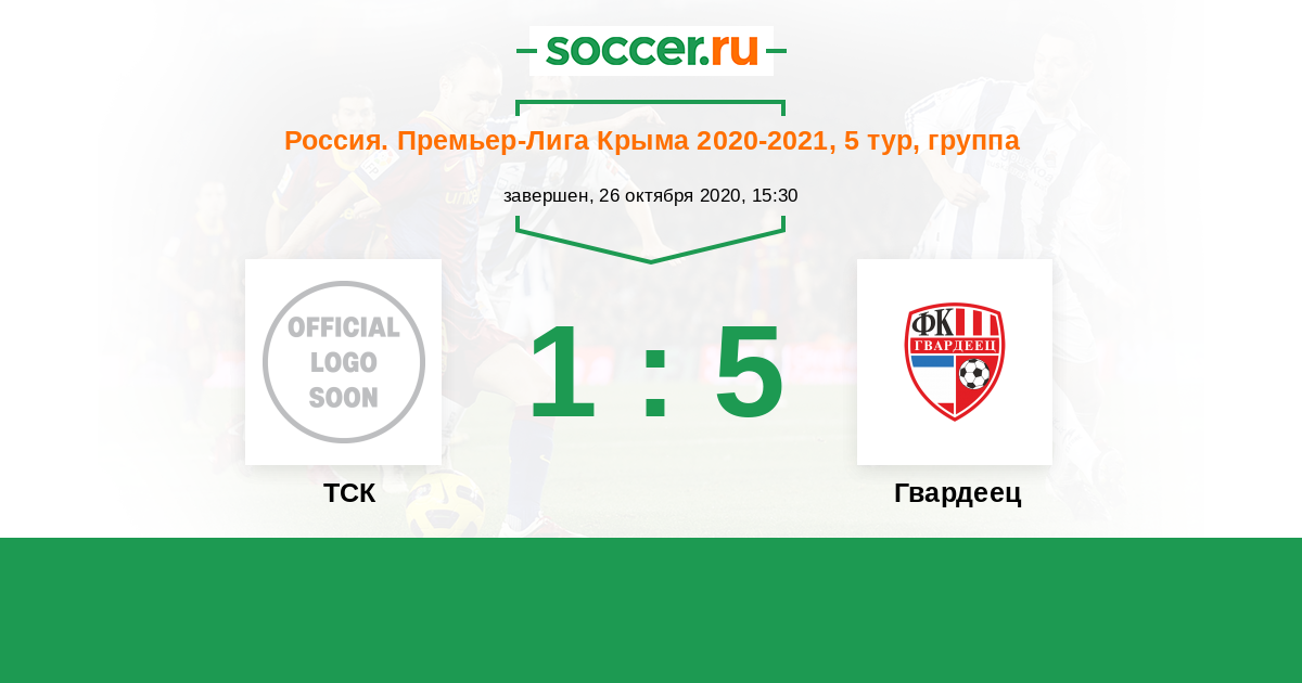 Россия. Премьер-Лига Крыма 26.09.2018 ТСК Логотип футбольный клуб ТСК (Симферополь) 1:0 Логотип футбольный клуб Гвардеец (Аграрное) Гвардеец