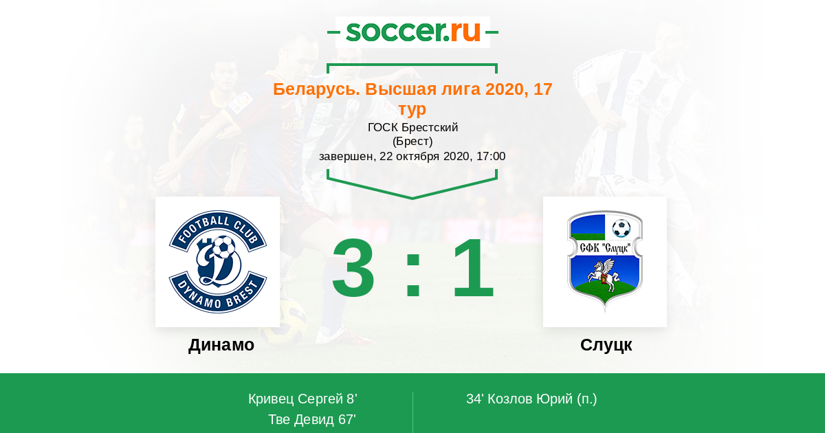 Протокол матча Динамо против Слуцк